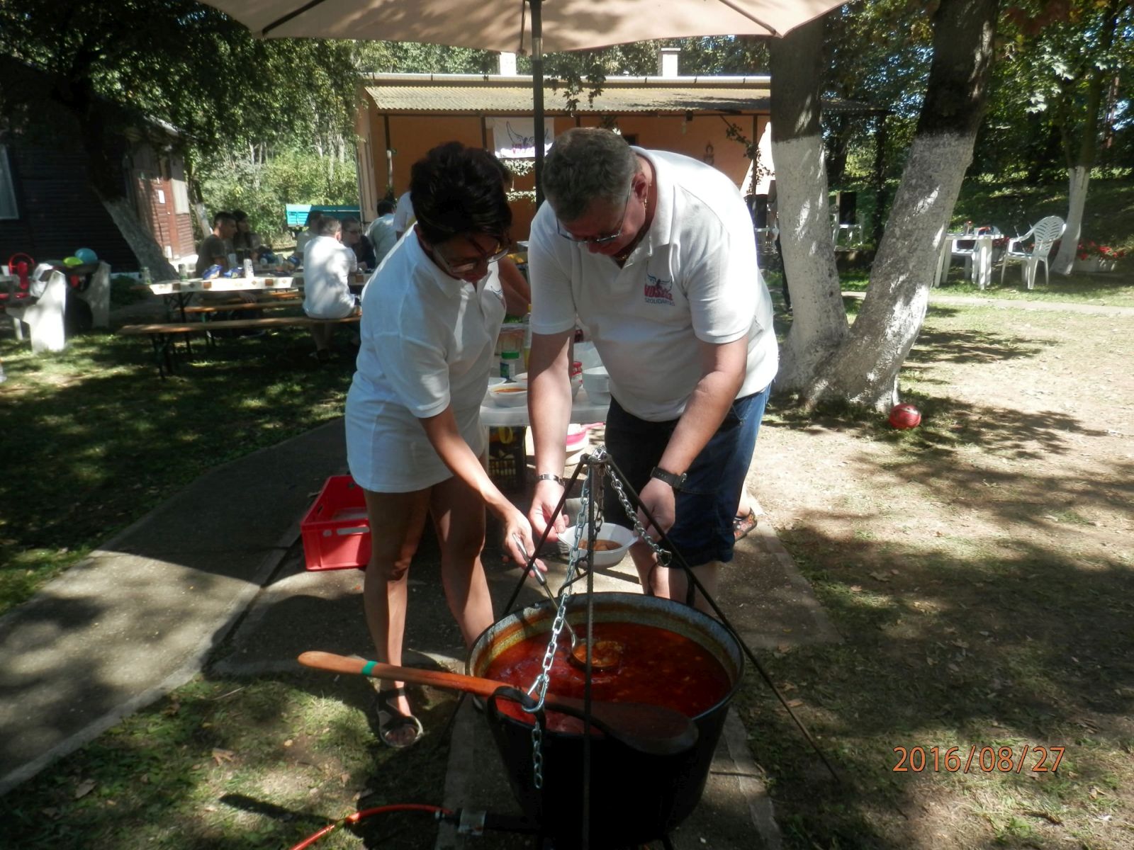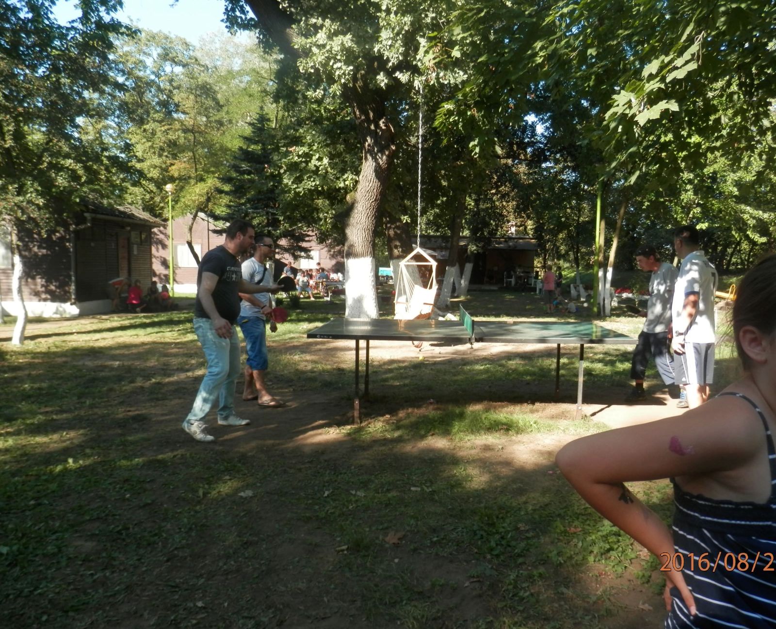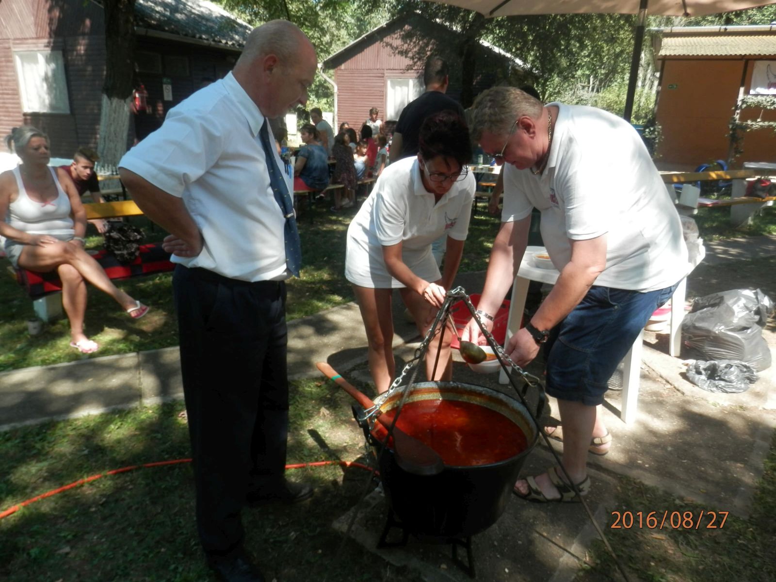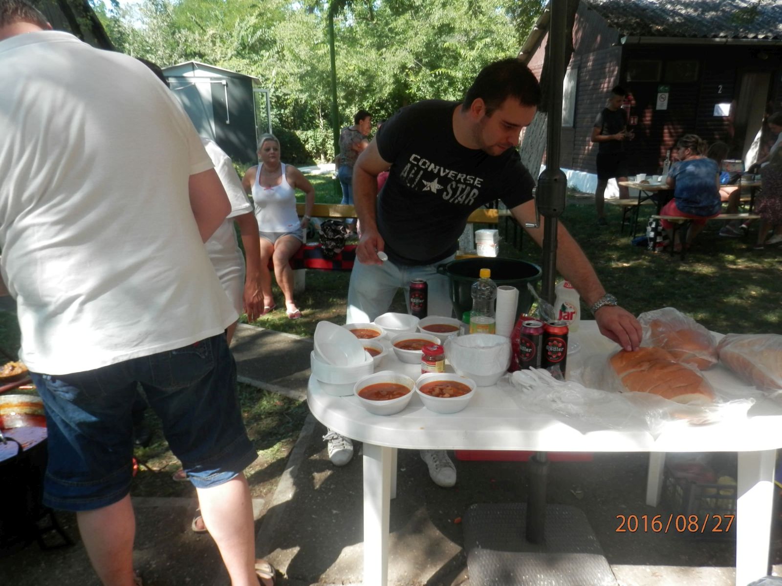 A segítők már korán reggel sürögtek-forogtak, hogy időben elkészüljön az ebéd. A korán érkezők sem maradtak éhen, mert Kiss Sándorné (Zsuzsi) kezei alól isteni lángosok kerültek ki még délelőtt, aminek olyan sikere volt, hogy délutáni folytatása is lett. A gyerekeknek csillámtetkóval kedveskedtünk, ami a felnőtteknél is nagy sikert aratott, továbbá még volt lehetőség pingpongozni, tollasozni, focizni és az ellipszis tréner kipróbálására. A kicsik színes labdákat kaptak ajándékba, hogy még emlékezetesebbé tegyük számukra ezt a napot. A hinták és lipityókák egész nap foglaltak voltak. Agytornaként mini sakktornát tartottunk, amiből kicsik és nagyok egyaránt kivették a részüket. Délre elkészült a gulyásleves, és a merészek megkóstolhatták a kakastaréj-töke pörköltöt, amit Szabadi Miklós főszakács és kuktái készítettek. Halasi Zoltán is megtisztelt minket jelenlétével, aki egy rövid érdekvédelmi fórumot tartott a napi aktualitásokról, ami az ebéd elfogyasztása után kötetlen beszélgetésbe torkollott. A zenei aláfestést Dj Mcklode (Felföldi László) biztosította. A nap végére fergeteges hangulat kerekedett, amit egy kis tánccal koronáztunk meg.