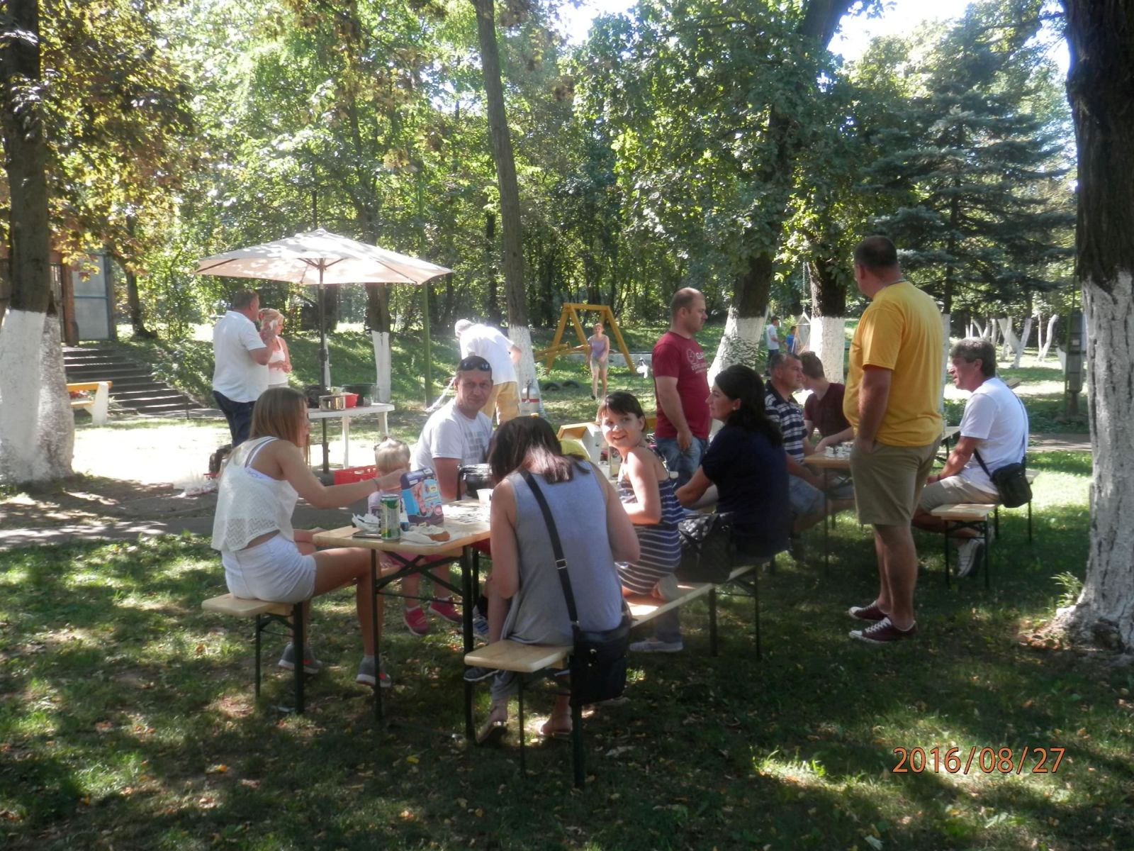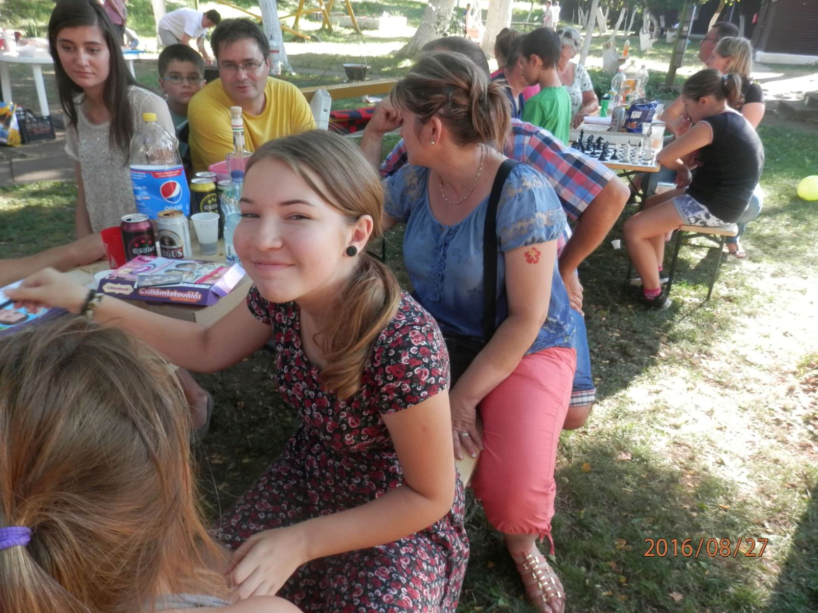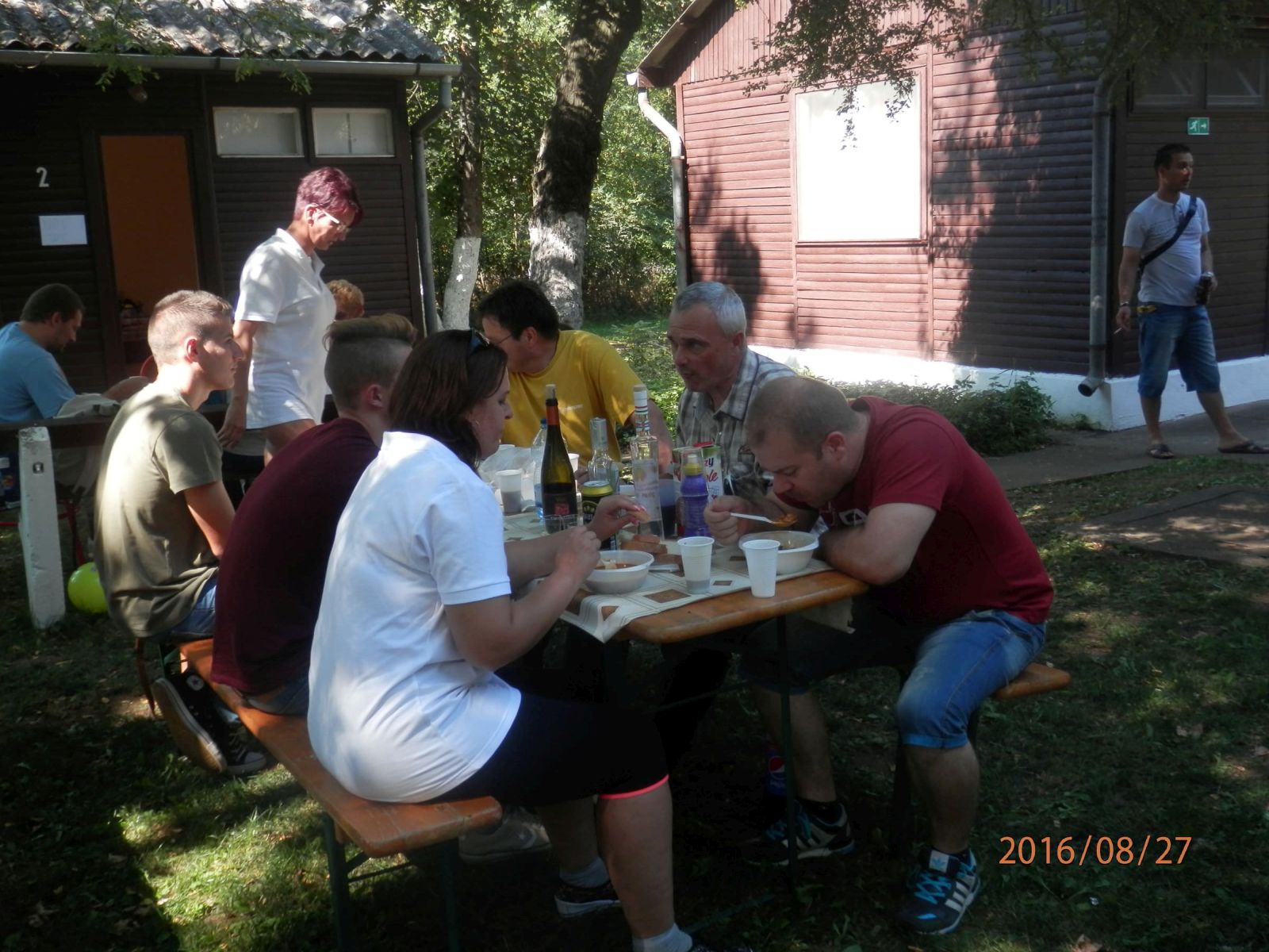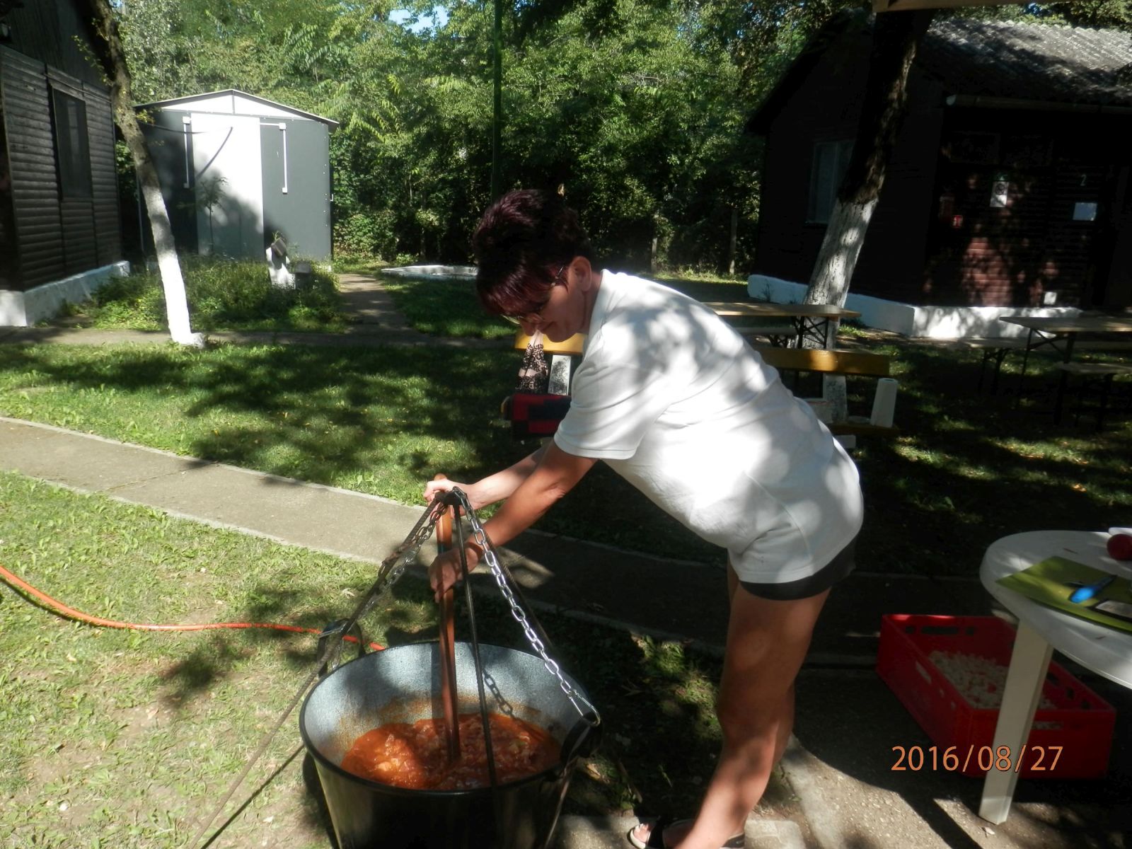A segítők már korán reggel sürögtek-forogtak, hogy időben elkészüljön az ebéd. A korán érkezők sem maradtak éhen, mert Kiss Sándorné (Zsuzsi) kezei alól isteni lángosok kerültek ki még délelőtt, aminek olyan sikere volt, hogy délutáni folytatása is lett. A gyerekeknek csillámtetkóval kedveskedtünk, ami a felnőtteknél is nagy sikert aratott, továbbá még volt lehetőség pingpongozni, tollasozni, focizni és az ellipszis tréner kipróbálására. A kicsik színes labdákat kaptak ajándékba, hogy még emlékezetesebbé tegyük számukra ezt a napot. A hinták és lipityókák egész nap foglaltak voltak. Agytornaként mini sakktornát tartottunk, amiből kicsik és nagyok egyaránt kivették a részüket. Délre elkészült a gulyásleves, és a merészek megkóstolhatták a kakastaréj-töke pörköltöt, amit Szabadi Miklós főszakács és kuktái készítettek. Halasi Zoltán is megtisztelt minket jelenlétével, aki egy rövid érdekvédelmi fórumot tartott a napi aktualitásokról, ami az ebéd elfogyasztása után kötetlen beszélgetésbe torkollott. A zenei aláfestést Dj Mcklode (Felföldi László) biztosította. A nap végére fergeteges hangulat kerekedett, amit egy kis tánccal koronáztunk meg.