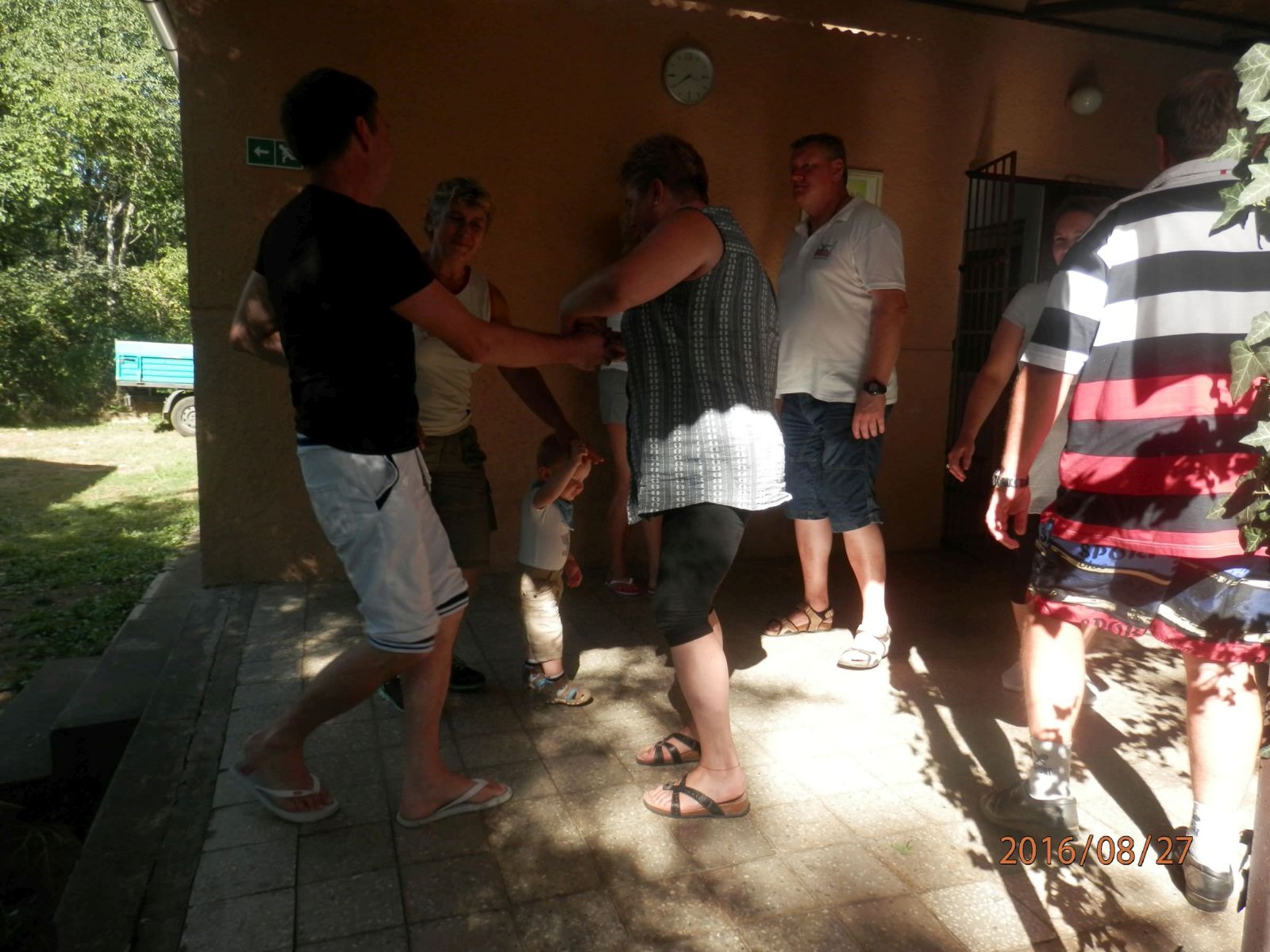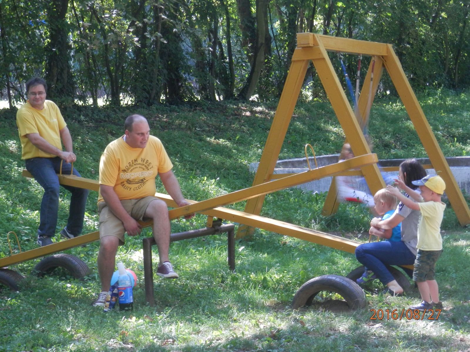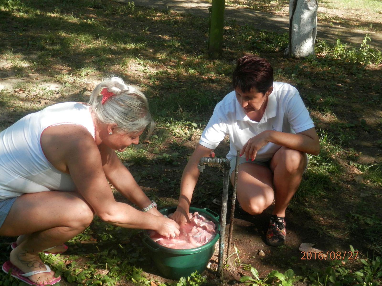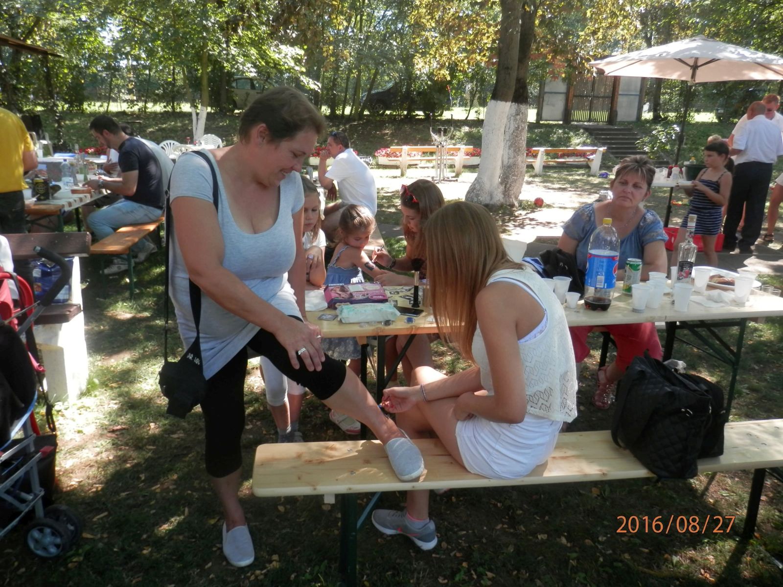 A segítők már korán reggel sürögtek-forogtak, hogy időben elkészüljön az ebéd. A korán érkezők sem maradtak éhen, mert Kiss Sándorné (Zsuzsi) kezei alól isteni lángosok kerültek ki még délelőtt, aminek olyan sikere volt, hogy délutáni folytatása is lett. A gyerekeknek csillámtetkóval kedveskedtünk, ami a felnőtteknél is nagy sikert aratott, továbbá még volt lehetőség pingpongozni, tollasozni, focizni és az ellipszis tréner kipróbálására. A kicsik színes labdákat kaptak ajándékba, hogy még emlékezetesebbé tegyük számukra ezt a napot. A hinták és lipityókák egész nap foglaltak voltak. Agytornaként mini sakktornát tartottunk, amiből kicsik és nagyok egyaránt kivették a részüket. Délre elkészült a gulyásleves, és a merészek megkóstolhatták a kakastaréj-töke pörköltöt, amit Szabadi Miklós főszakács és kuktái készítettek. Halasi Zoltán is megtisztelt minket jelenlétével, aki egy rövid érdekvédelmi fórumot tartott a napi aktualitásokról, ami az ebéd elfogyasztása után kötetlen beszélgetésbe torkollott. A zenei aláfestést Dj Mcklode (Felföldi László) biztosította. A nap végére fergeteges hangulat kerekedett, amit egy kis tánccal koronáztunk meg.