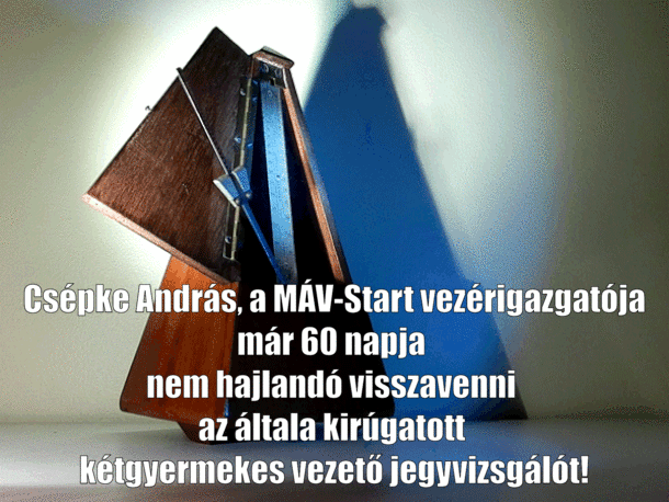 Mint írtuk, Németh Zsolt, a jogsértő módon elbocsátott vezető jegyvizsgáló tagtársunk nem tudott volna megélni abból a pénzből, amit új, a MÁV által felkínált pozíciójában keresett volna - ezt is Dávid Ilona, a MÁV Zrt. elnök-vezérigazgatója ajánlotta fel számára a VDSzSz Szolidaritás képviselőjével folytatott tárgyaláson. Eközben Csépke András bosszúállóan kitart jogsértő tettei mellett, Zsolt tárgyalására szeptemberben kerül sor, a VDSzSz Szolidaritás természetesen biztosítja számára a képviseletet. (Anna, a másik jogsértően eltávolított vezető jegyvizsgáló forgalmi szolgálattevő lesz, ugyancsak Dávid Ilona jóvoltából.)