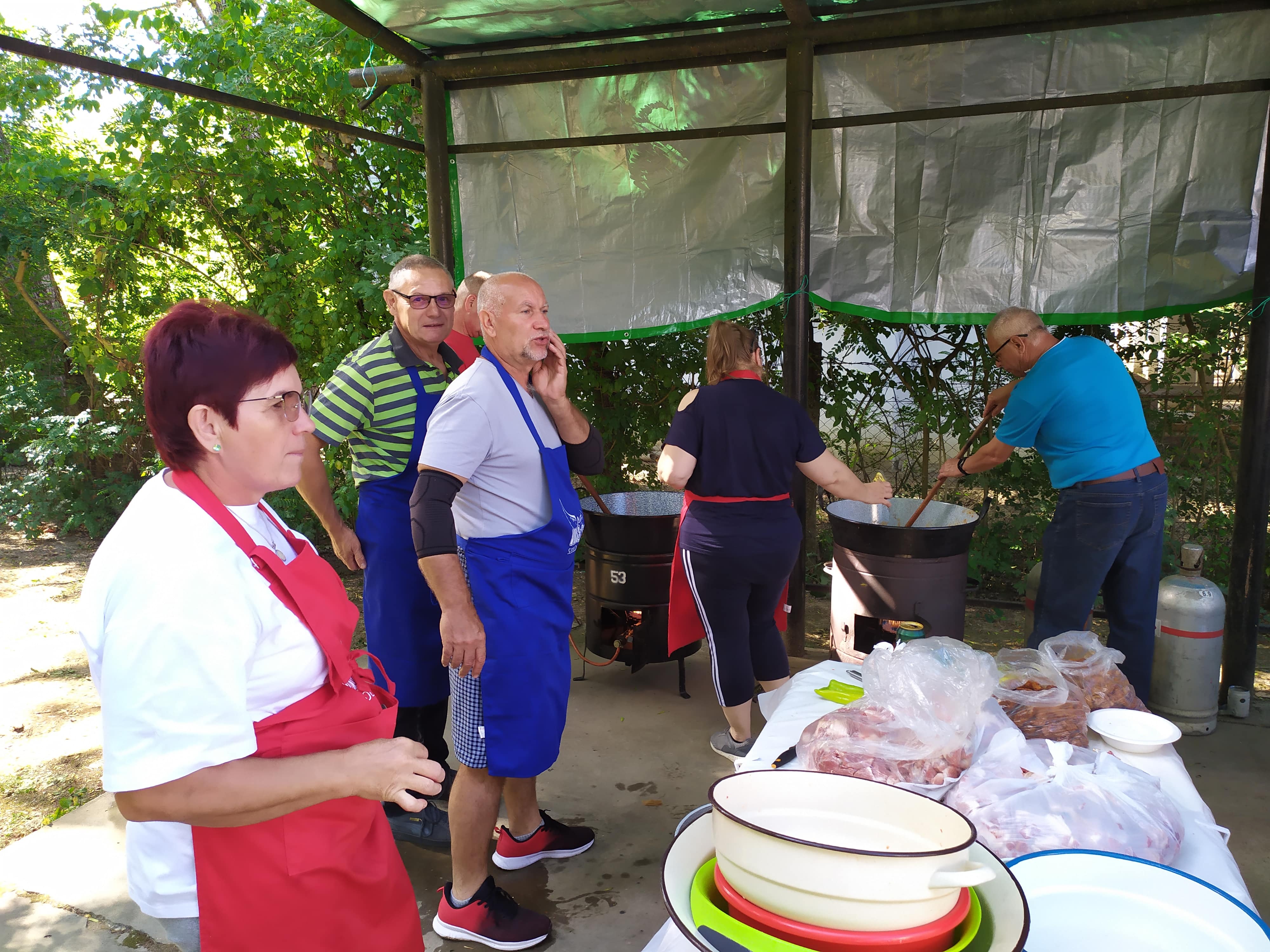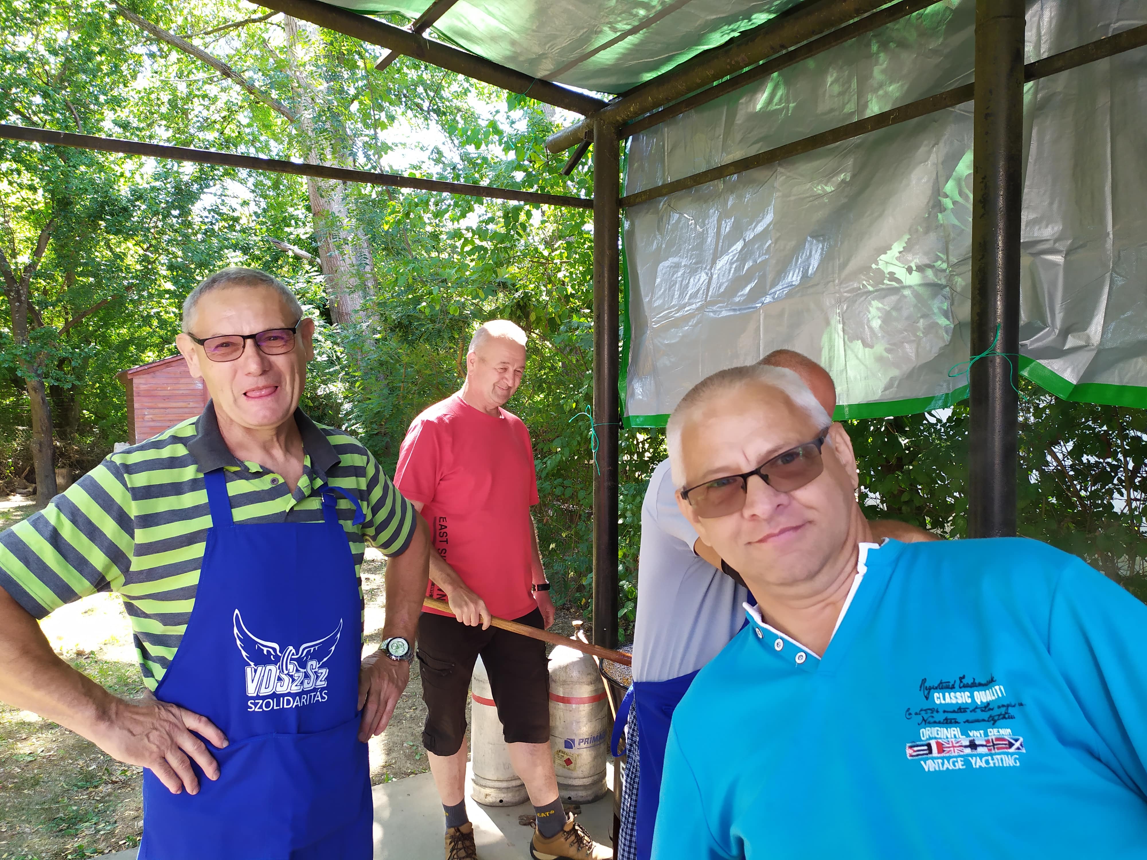 Új helyszínen, az Önkormányzat üdülőjében vártuk tagjainkat és családtagjaikat ebédre a Cargós főzőcsapat által készített finom sertés-, köröm- és csülökpörkölttel, vacsorára pedg a Papp Karcsi és Cargós segítői által sütött csirkecombbal és tarjával. A kicsik számára is gondoskodtunk az idő kellemes eltöltéséről csillámtetoválással, arcfestéssel és különféle játékokkal. A talpalávalót a tagtársaink által már ismert és három tagúvá bővült Holdfény duó szolgáltatta a jelenlévőknek.