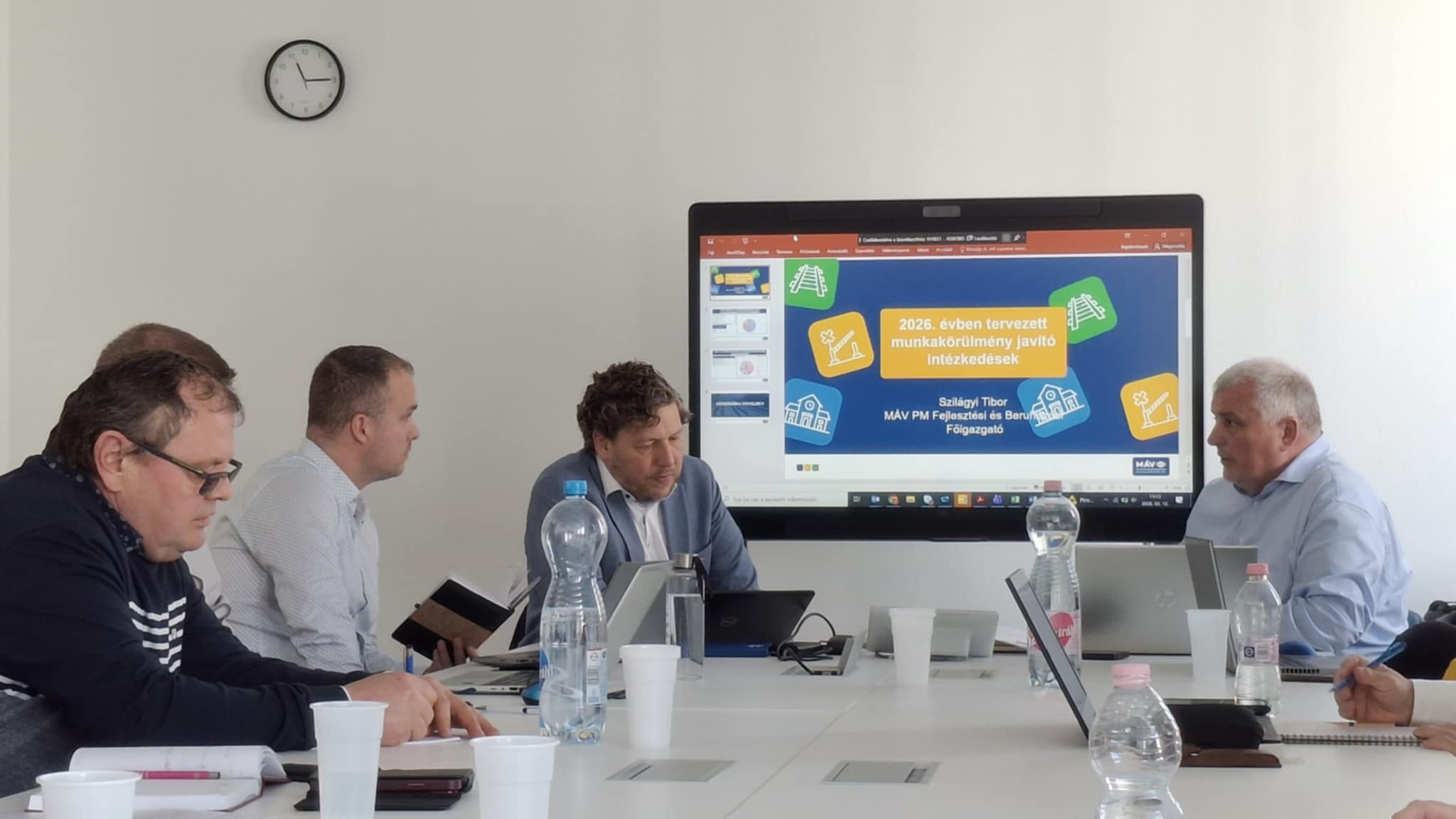 Vasas Zsolt, a MÁV Pályaműködtetési Zrt. KMvB elnöke köszöntötte a munkáltató részéről megjelent vezetőket, tagokat és az állandó meghívott vendégeket. Ezt követően Dr. Varsányi Péter munkajogi vezető mutatkozott be, majd Kókai Béla Pályafelügyeleti igazgató ismertette a 2025/2026-os téli időszak forgalomlebonyolításával kapcsolatos tapasztalatokat területi bontásban: