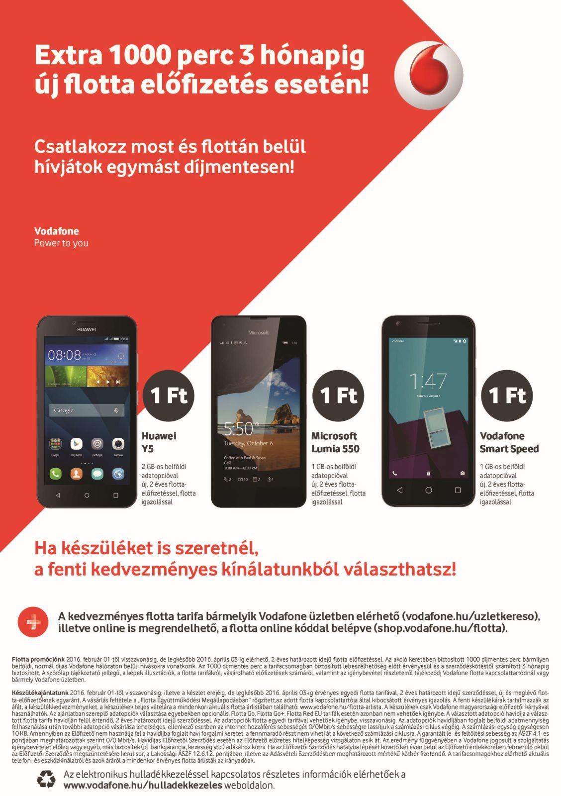 Hírek Vodafone: Februári akció! 2016.02.09 Új flotta-előfizetés esetén hálózaton belül extra 1000 perc 3 hónapon át! Letölthető dokumentumok: Flotta_akcio_Februar.pdf Galéria Megosztom Facebookon Link másolása