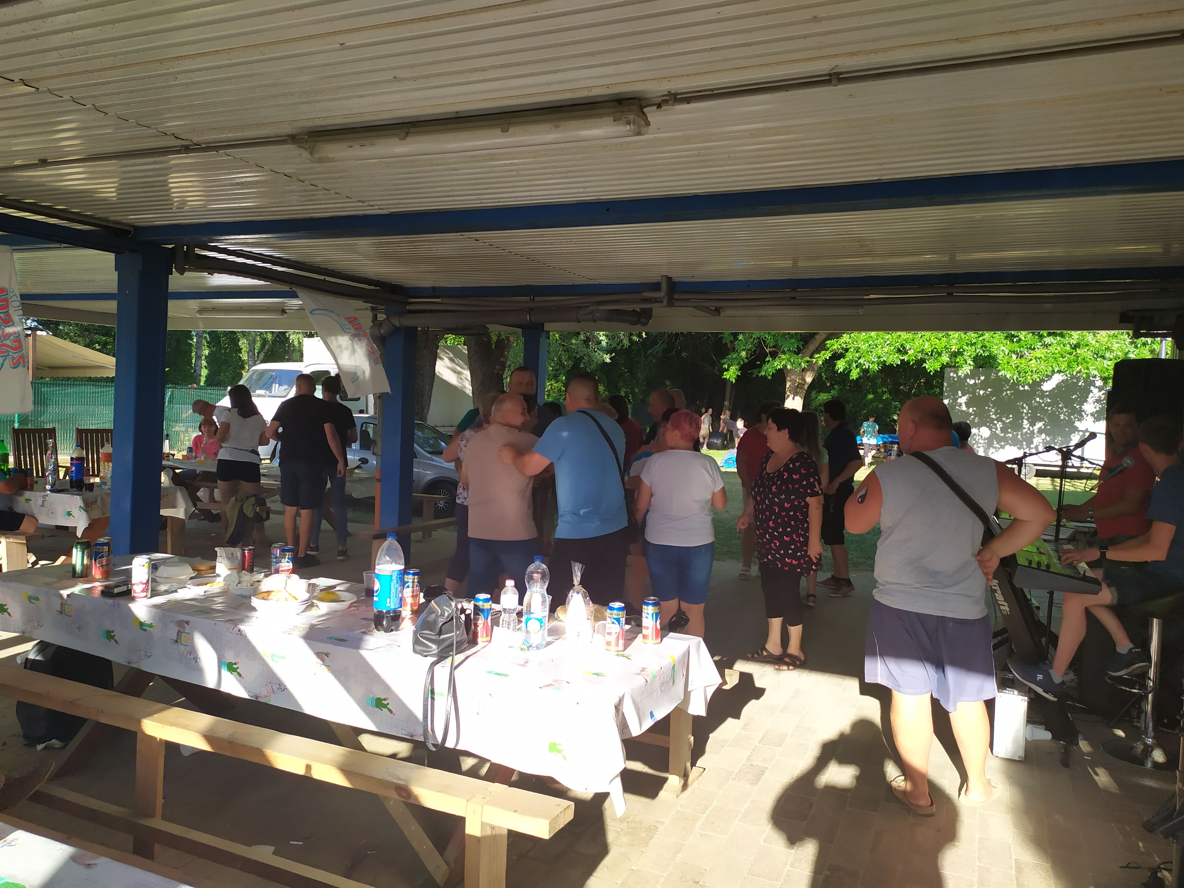 Új helyszínen, az Önkormányzat üdülőjében vártuk tagjainkat és családtagjaikat ebédre a Cargós főzőcsapat által készített finom sertés-, köröm- és csülökpörkölttel, vacsorára pedg a Papp Karcsi és Cargós segítői által sütött csirkecombbal és tarjával. A kicsik számára is gondoskodtunk az idő kellemes eltöltéséről csillámtetoválással, arcfestéssel és különféle játékokkal. A talpalávalót a tagtársaink által már ismert és három tagúvá bővült Holdfény duó szolgáltatta a jelenlévőknek.