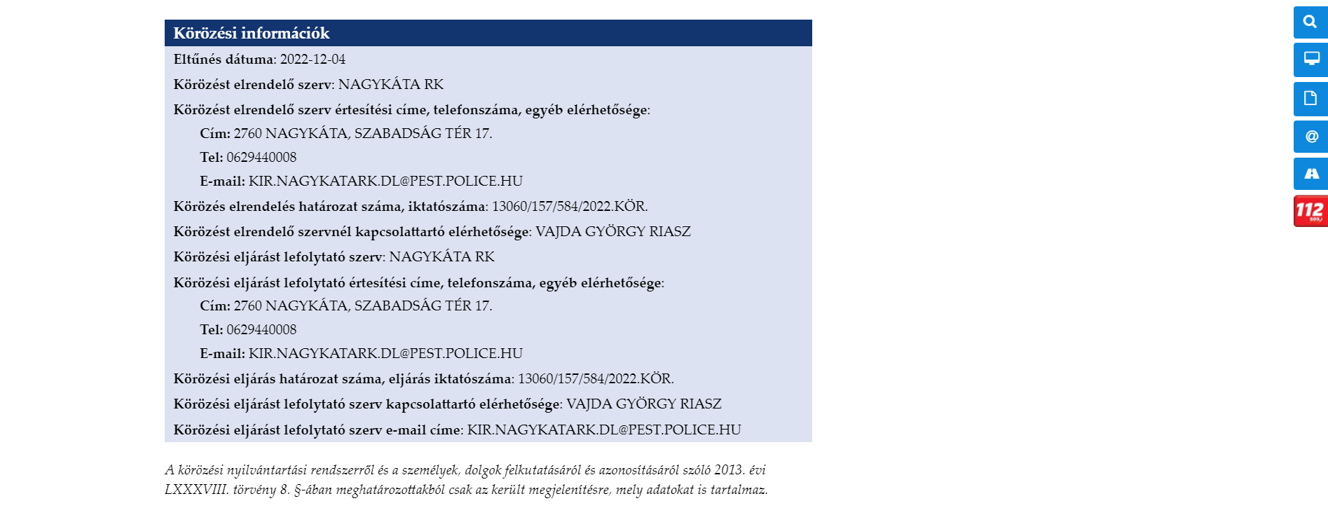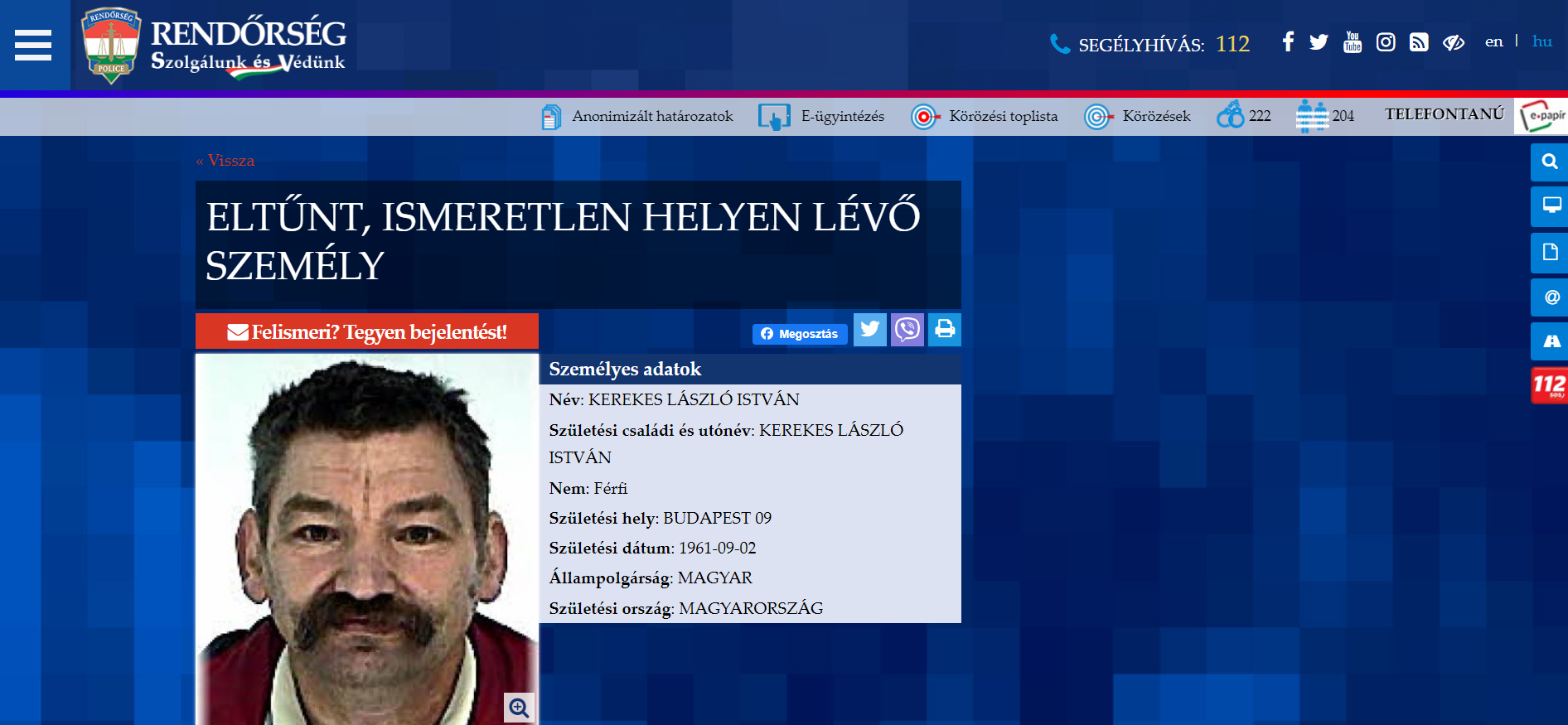 László december 4-én tűnt el, a rendőrség az eltűnt emberek közé is felvette a honlapján.