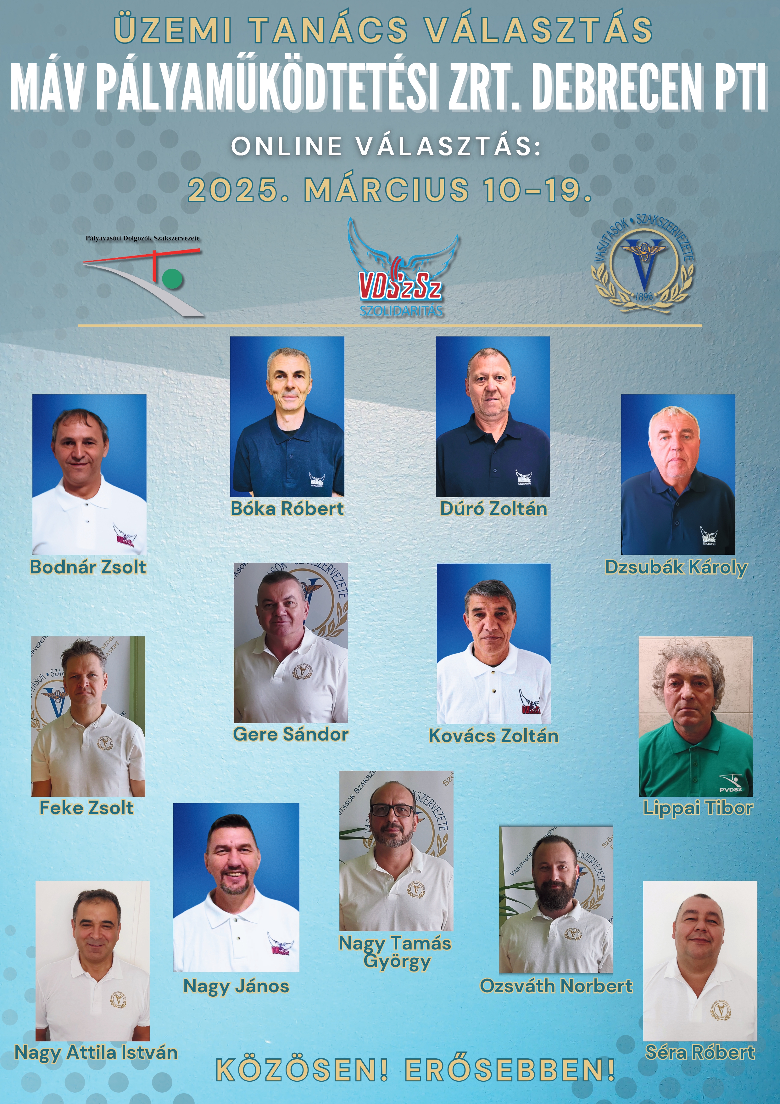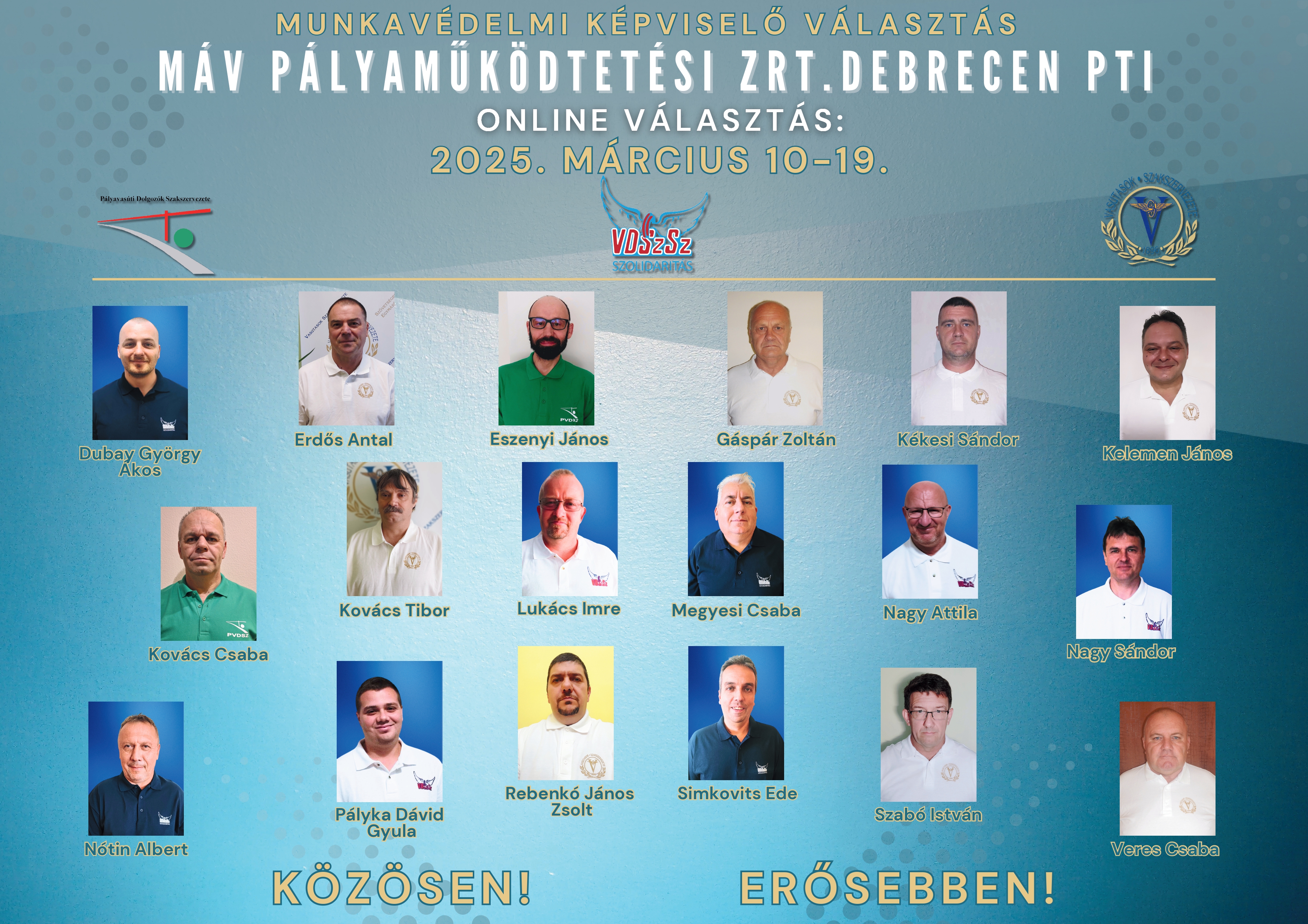 A munkavédelmi képviselő-választás szavazólapján pedig kérjük, hogy az alábbi jelöltek MINDEGYIKÉT támogasd szavazatoddal: