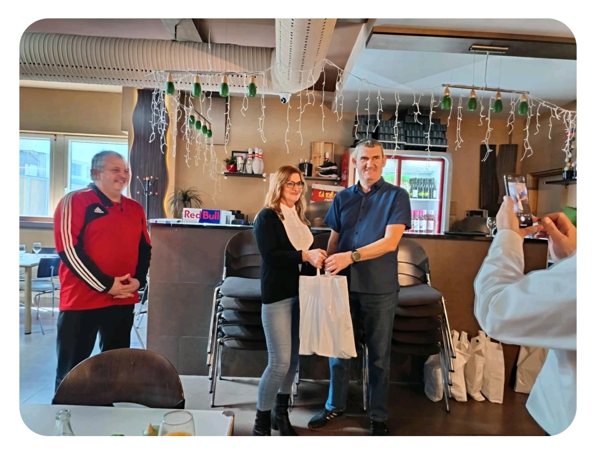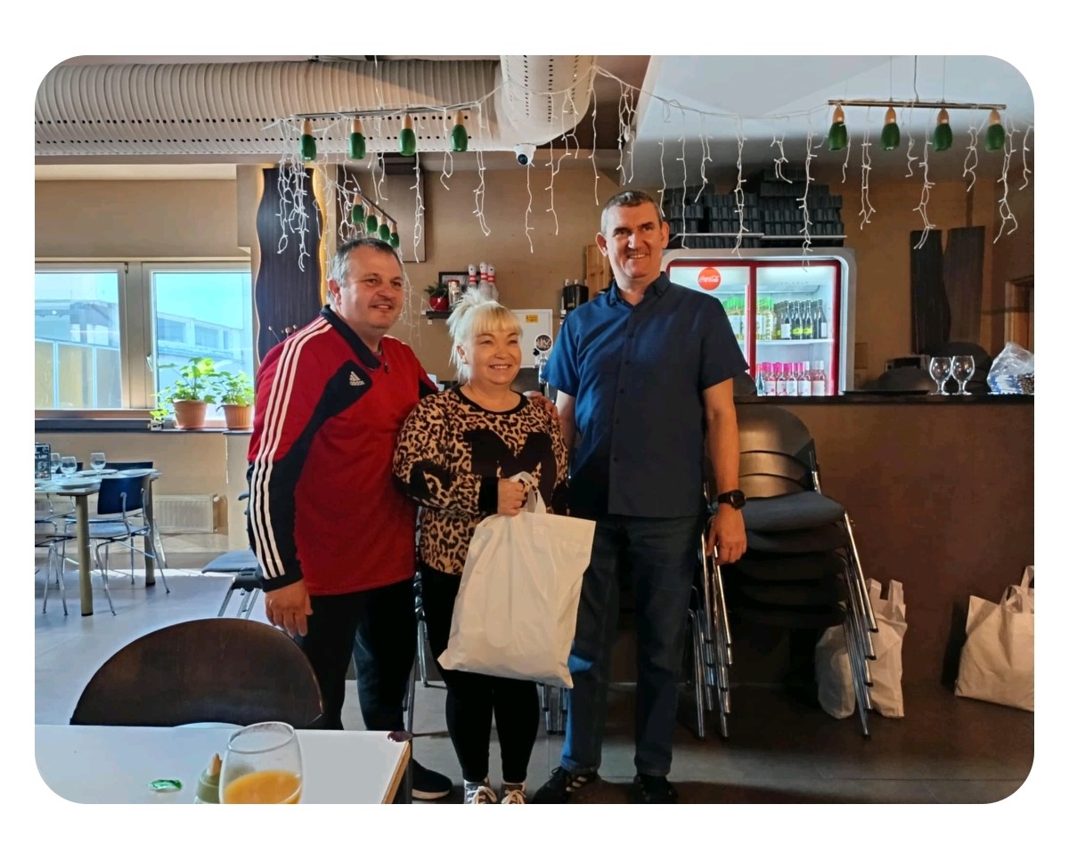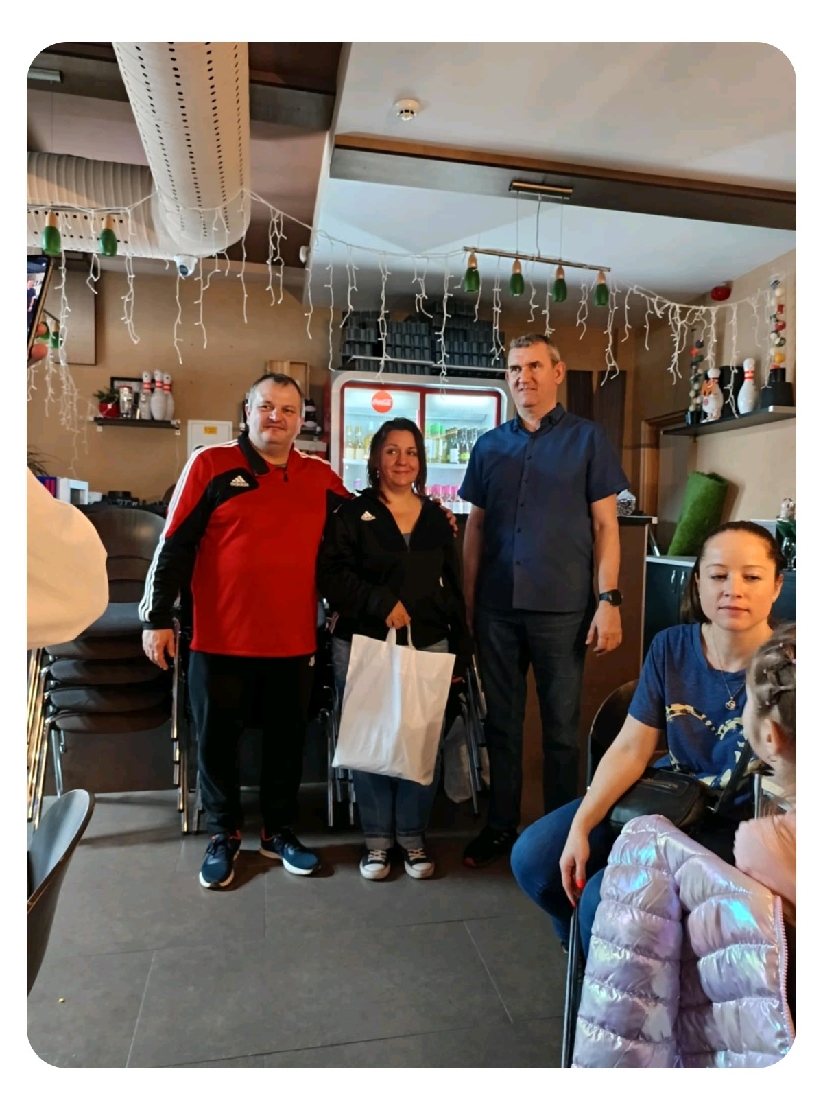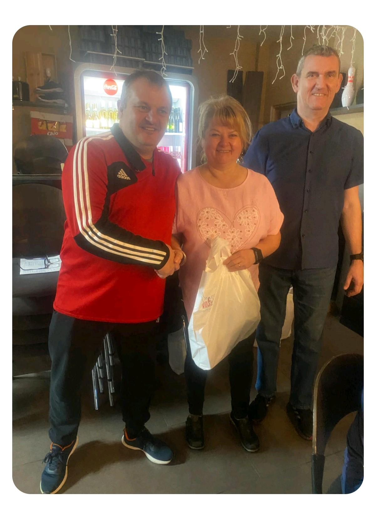 Az ebéd után László Gábor területi vezető ügyvivő és helyettese, Lévai Zsolt, kiosztották az első három bowling és darts versenyzőnek járó ajándékcsomagot, illetve az okleveleket. Az ajándékcsomagokat a VDSzSz Szolidaritás Központ ajánlotta fel, a központ részéről Diamant Tünde szakértő, a Felügyelő Bizottság elnöke vett részt rendezvényünkön.