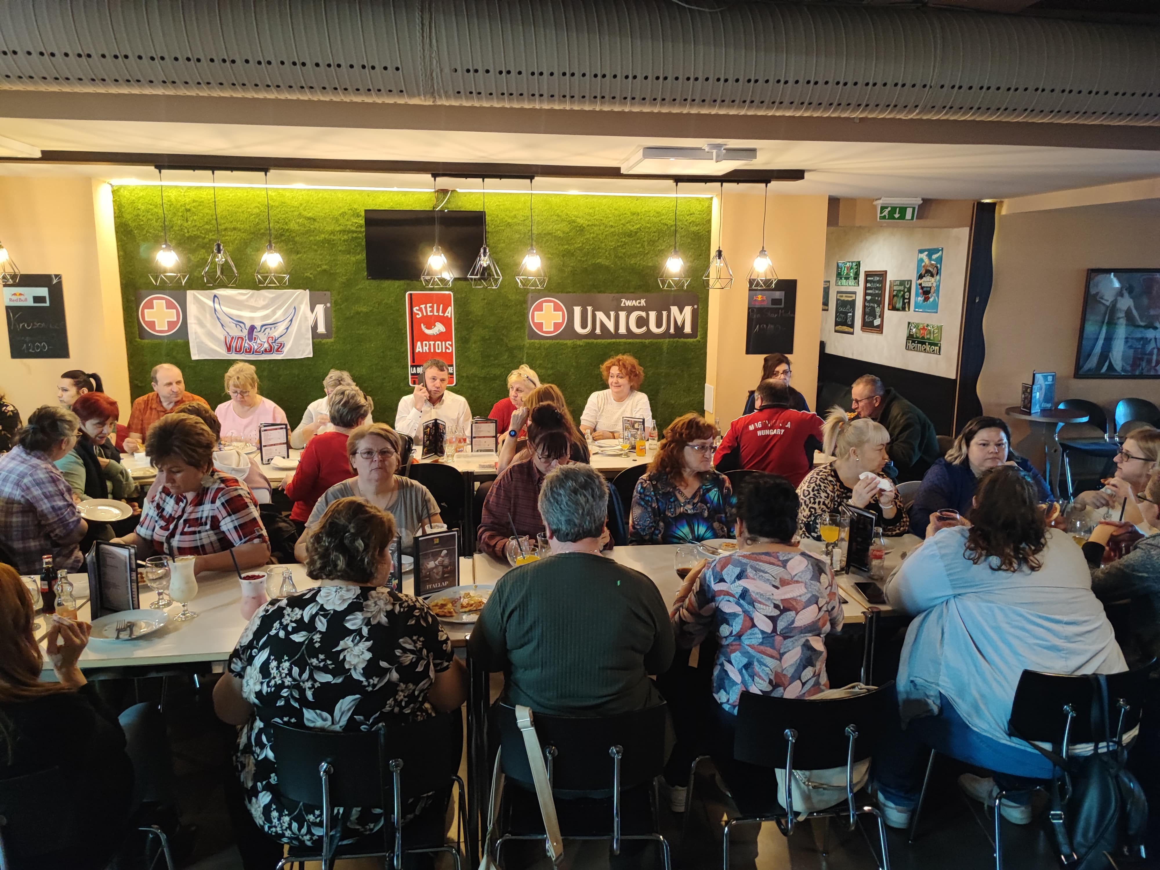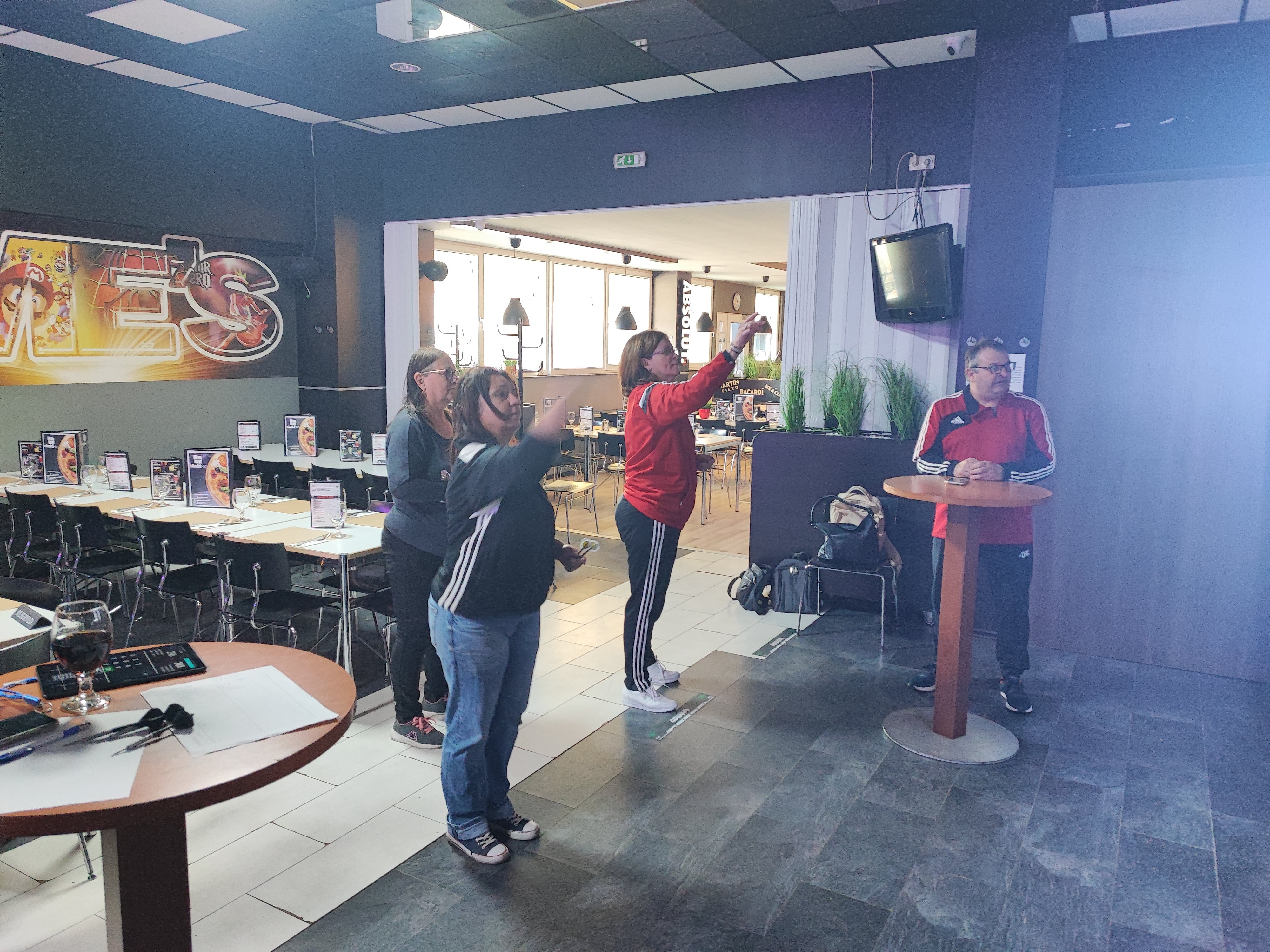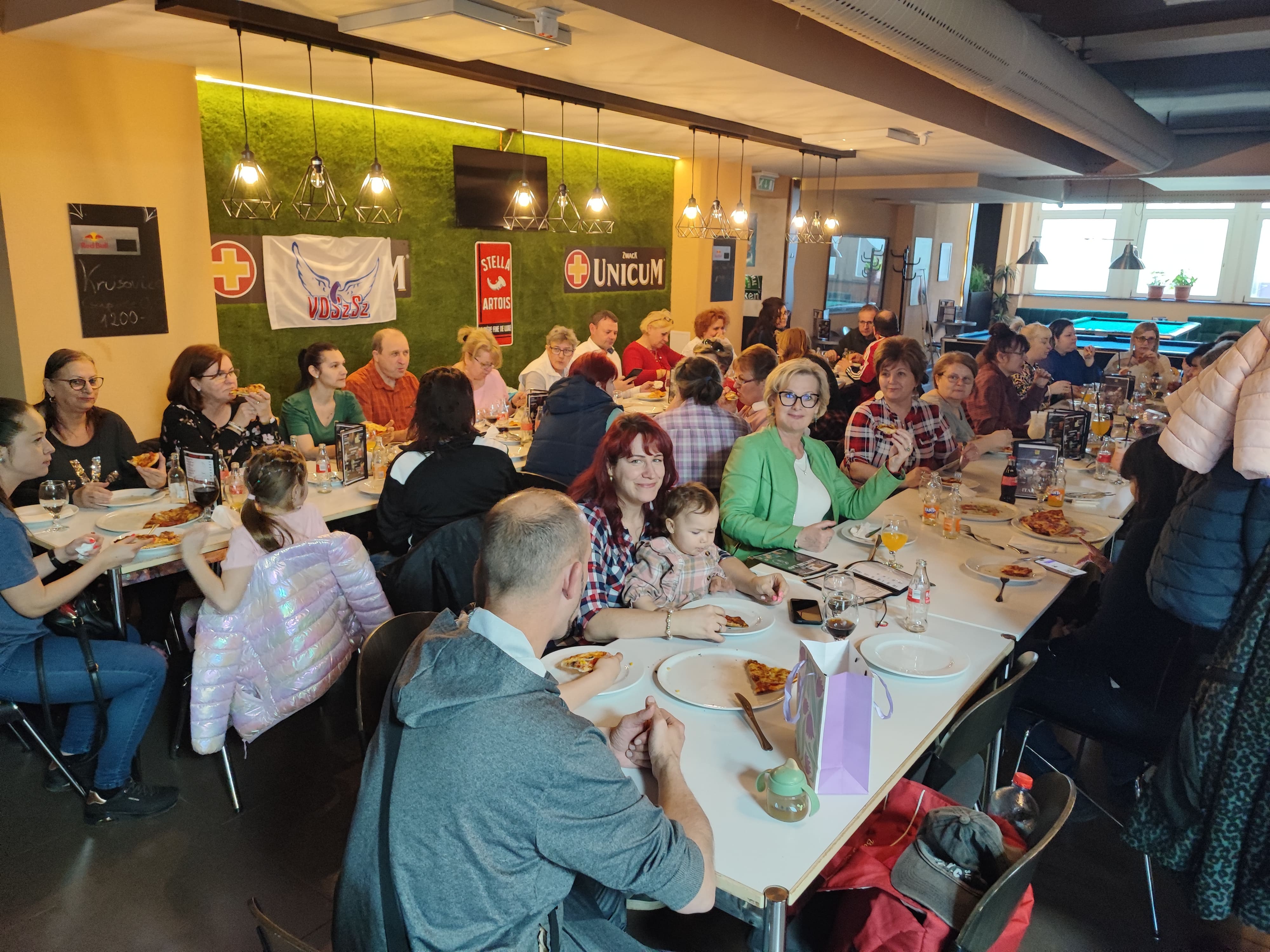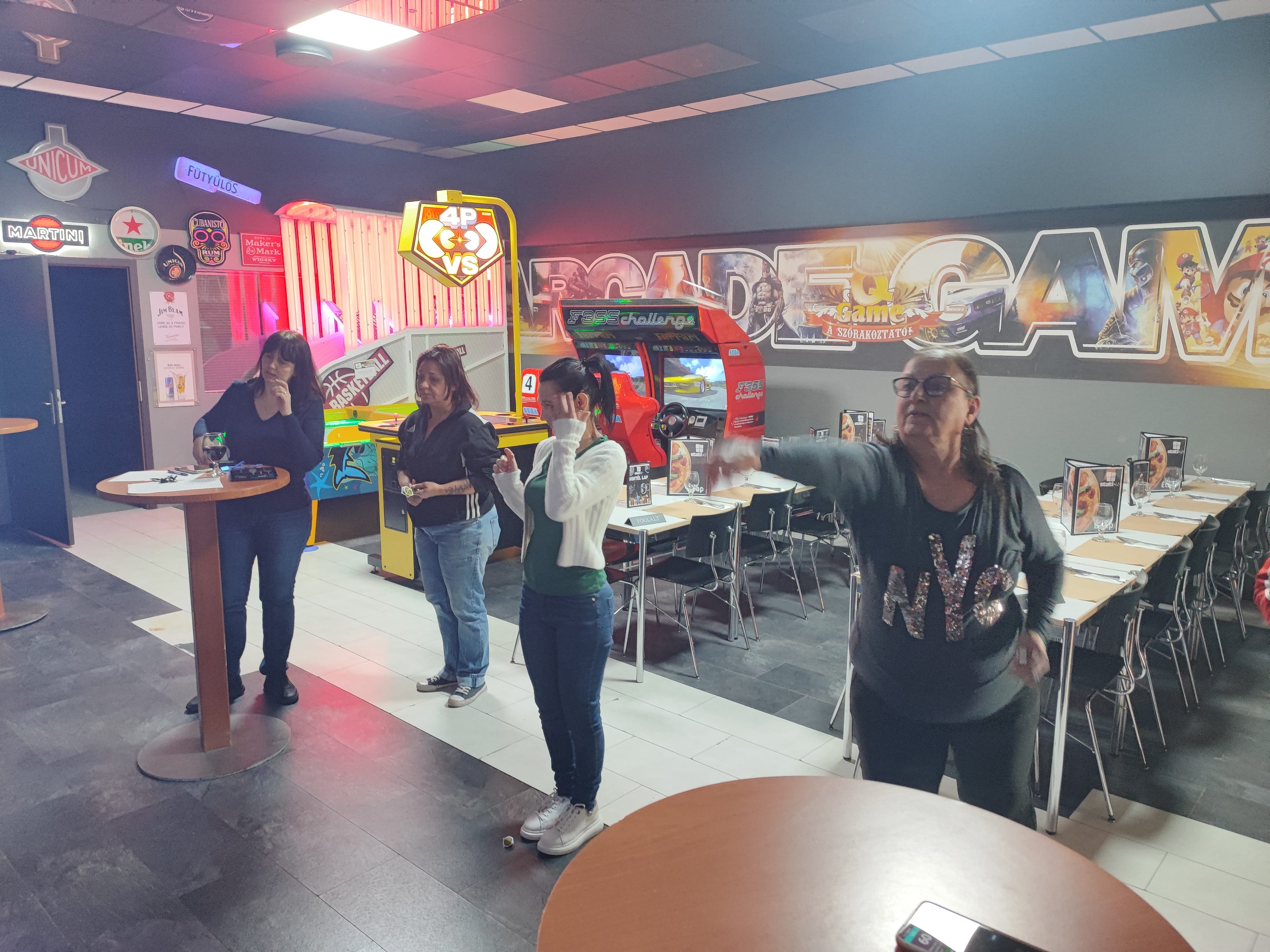 A közel 50 résztvevő nagyon jól érezte magát, örömmel találkoztak a rég látott kollégák egymással. Vidám beszélgetések, hangos nevetések, egy-egy sikeres dobás, gurítás alkalmával vastapstól és ovációtól volt hangos a játékterem. A kétórás szoros küzdelem után a vendégek elfogyasztották az előre megrendelt többféle pizzát, üdítőt, kávét.